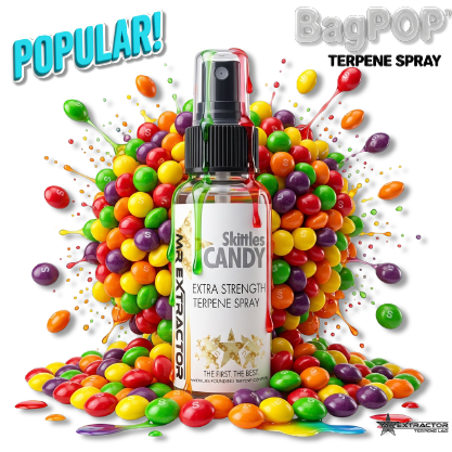 Skittles Candy Terpene Spray explodes with bright mixed fruit, sweet candy shell, and that rainbow-style sugary hit that makes the aroma feel loud, juicy, and instantly recognizable. It gives bulk flower, pre-rolls, and concentrates a bold BagPop™ that pushes the sweeter smell forward, covers unwanted odor, and makes the product land with the kind of colorful candy aroma the packaging is built to sell.