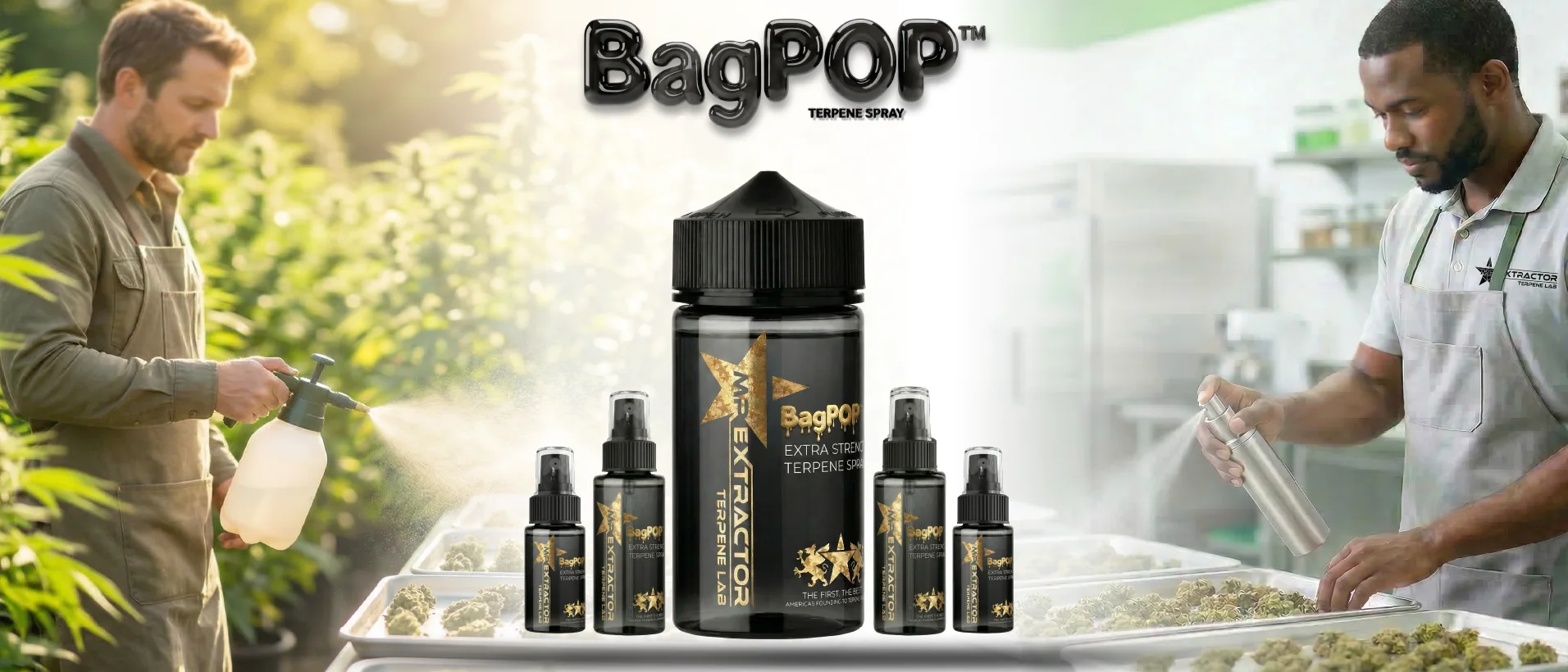 Mist BagPOP™ Terpene Spray over trays or tubs of plant material from 8–12 inches away, then seal it in bags so the aroma can circulate. This is how you boost BagPop™, and make your bag smell heavy when opened.